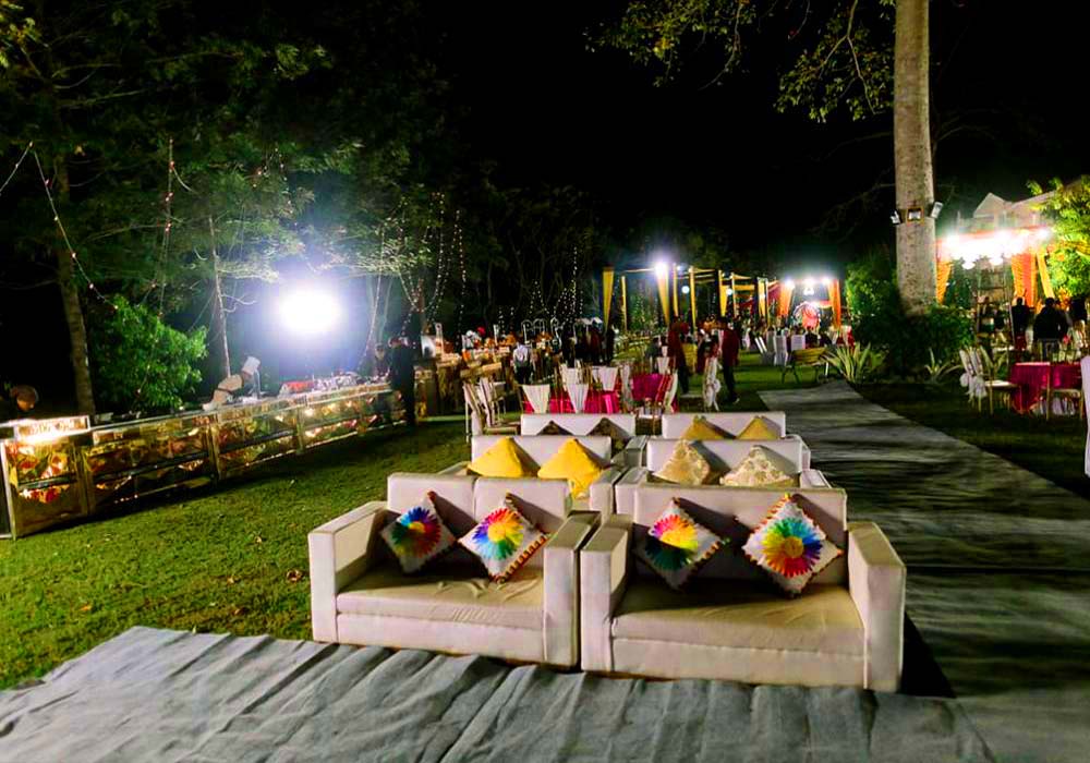 - Open lawns give enough space for décor, seating & dance